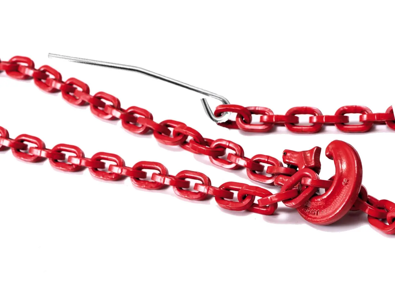 Łańcuch zrywkowy czerwony z hakiem i szpilką