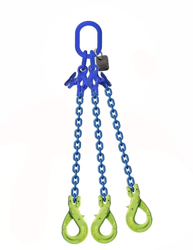 Zawiesie łańcuchowe trzy-cięgnowe z regulacją długości zakończone hakami bezpiecznymi