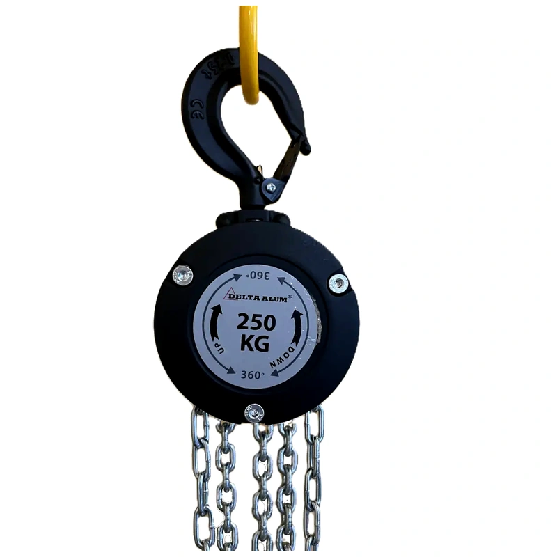 Ręczna aluminiowa łańcuchowa wciągarka DELTA jest niezastąpionym urządzeniem w wielu branżach. Wyposażona w obracaną o 360 ° osłonę łańcucha, co umożliwia obsługę z dowolnego kierunku bez konieczności przestawiania sprzętu. Dzięki zastosowaniu wysokiej jakości łożysk, precyzyjnie obrobionemu wału, kole łańcuchowym i przekładnią zapewnia płynną i bezpieczną pracę, a całość ukryta w lekkiej i wytrzymałej aluminiowej obudowie zapewniającej również ochronę przed wodą, kurzem i wstrząsami zewnętrznymi. Wciągarka wyposażona w kute obrotowe haki z zatrzaskiem oraz wysokiej jakości ocynkowany łańcuch nośny w klasie 8 EN 818-7 T, zapewnia stabilność i niezawodność podczas użytkowania.