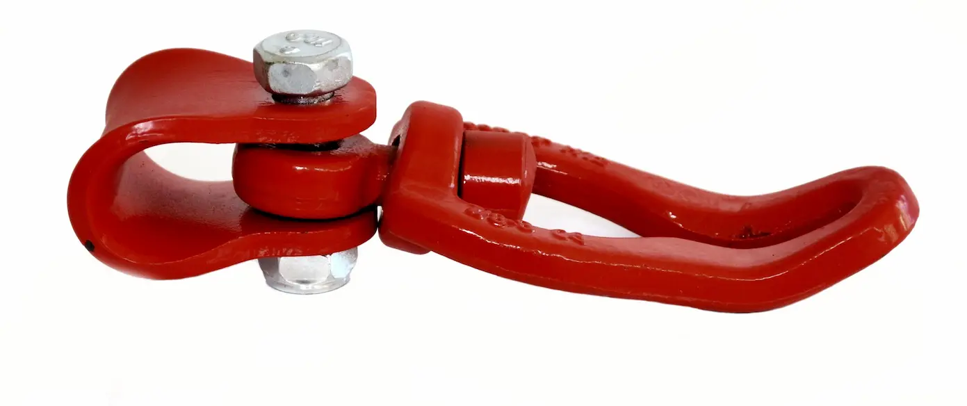 Zamek ślizgowy obrotowy wykonany w kasie 80 do zrywki drewna. Specjalny kształt zamka zrywkowego zapewnia dobry i mocny chwyt łańcucha. W opcji obrotowej mamy pewność że ułożenie zamka ślizgowego względem łańcucha podczas zrywki drewna jest prawidłowa i nadmiernie nie obciąża łańcucha, tym samym wydłużając jego czas użytkowania. Zamek ślizgowy to element kuty malowany proszkowo łączony śrubą M10 przeznaczony jako osprzęt do wleczenia drewna, wykorzystywany także w rolnictwie. Nasz zamek ślizgowy do zrywki drewna to gwarancja bezpieczeństwa i efektywności podczas pracy w trudnych warunkach leśnych. Dzięki niemu możesz skoncentrować się na pracy wiedząc że kłoda jest bezpiecznie i pewnie zamocowana.